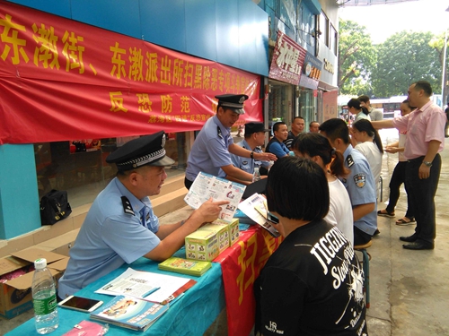 活动当天,东漖街综治办和东漖派出所向渔具市场经营方和档主宣传了扫黑除恶工作的重要意义和必要性,号召社会各界对黑恶势力维持“零容忍”,发现一起举报一起,公共营造公平公正的经营环境,维护辖区安全。活动中还向经营方、档主和社区居民派发《致居民群众的一封信》。