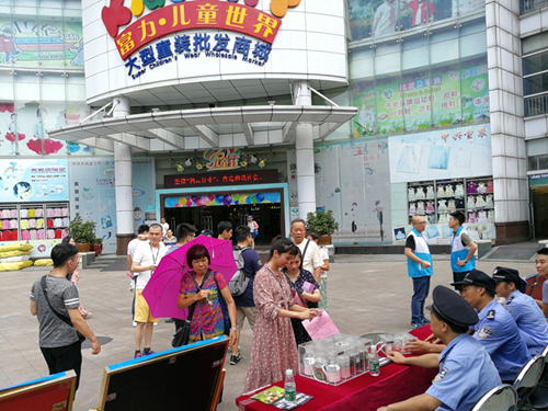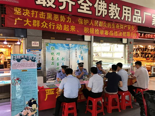 逢源街综治办联同街道派出所于8月14日至15日在辖内大型专业市场富力童装世界和华林国际玉器城开展扫黑除恶专项斗争工作宣传活动,鼓励群众积极举报线索,参与到扫黑除恶的工作之中。活动期间,宣传覆盖到商户、顾客、物流人员等多个群体,共计派发宣传资料800余份,宣传品200余份,收到较好的宣传效果。