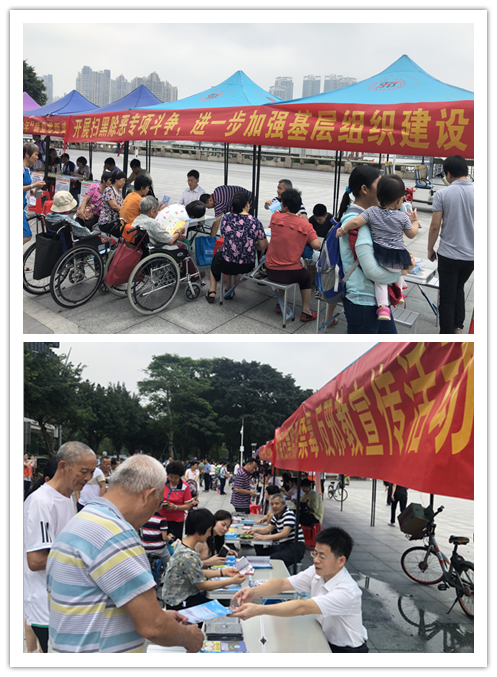 活动现场,悬挂“花地街开展扫黑除恶、禁毒、反邪教宣传活动”、“开展扫黑除恶专项斗争,进一步加强基层组织建设”等宣传横幅,提供咨询服务,派发扫黑除恶、禁毒、反邪教等宣传资料单张、小册子,参与活动居民群众200多人,共派发宣传资料200多份。
