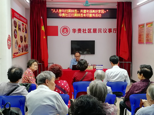 2018年11月12日下午,逢源街综治办协同华贵社区在华贵星光老年之家,开展“人人参与扫黑除恶,共建和谐美好家园”扫黑除恶专项宣传活动。人大代表、华贵社区驻点律师曾绍金向30多名居民群众讲解扫黑除恶相关知识,对扫黑除恶工作的相关法律问题做了详细的解析,分析了扫黑除恶工作对广大居民群众生活的影响,并鼓励居民群众为社区扫黑除恶工作献言献策,共同为社区平安和谐出一分力。