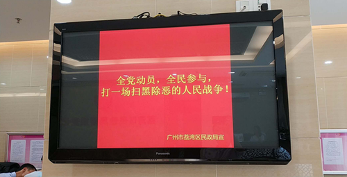 威尼斯人app区民政局婚姻登记处是面向全市居民及涉外人士,提供婚姻登记等行政确认服务的依法行政单位,每年接待办事群众及家属近2万人次。区民政局立足本职,充分发挥窗口部门优势,在婚姻登记处办事大厅资料架摆放扫黑除恶宣传资料供办事群众取阅,并利用LED显示屏滚动播放醒目的扫黑除恶宣传标语,取得了良好的宣传效果和社会反响。