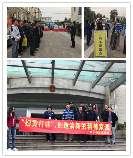 2018年11月28日,东沙街党政主要领导带队,街综信科、东沙派出所牵头,联合街文化站、街出管中心、工商所、综合行政执法队、东塱南漖经济联社和居委会等部门单位,对辖区治安重点部位及突出治安问题开展集中清查整治统一行动。