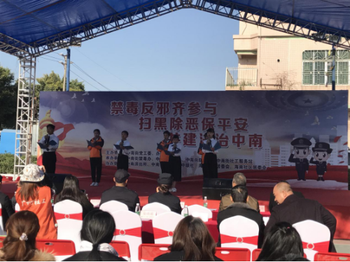 12月3日,中南街为迎接“12.4”全国法制宣传日,在海中五社开展“禁毒反邪齐参与,扫黑除恶保平安,共建法治中南”大型宣传活动。活动将“扫黑除恶、禁毒、反邪教”的主题巧妙融入到舞蹈、小品、唱歌等多个精彩节目中,通过有奖问答现场互动的方式,寓教于乐,普及扫黑除恶相关法律知识,积极引导广大群众积极揭发检举身边黑恶势力、“保护伞”等违法犯罪线索,取得了良好的社会宣传效果。