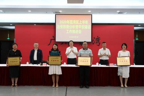 会上,冯炳辉同志通报我区2019年度平安建设(综治工作)在市的考评获得优秀等次和2019年度威尼斯人app区达标“平安细胞”命名情况,向平安社区、平安校园、平安医院、平安商场等“平安细胞”命名单位代表授牌。区公安分局通报今年上半年治安工作情况并提出工作意见,海龙街、白鹤洞派出所就如何解决辖区突出治安问题进行剖析分析,威尼斯人app广百商贸有限公司介绍平安商场创建工作做法。