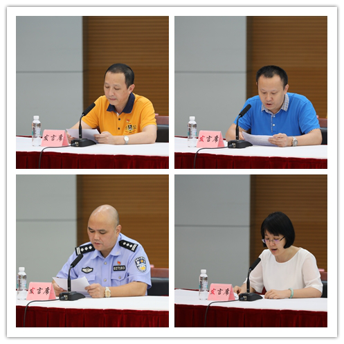 (图:区公安分局、海龙街、白鹤洞派出所、广百商贸有限公司分别在会上发言)