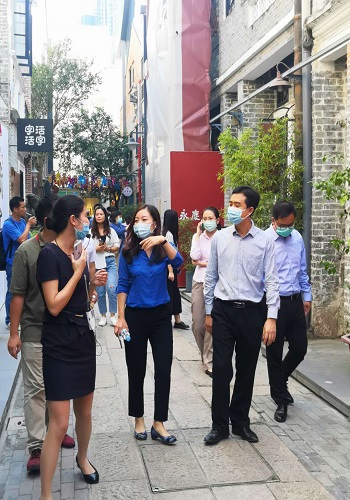 10月27日下午,中央湾区办、国家发展改革委地区司粤港澳大湾区建设协调一处李姝婧副处长,省大湾区办政策创新处袁彪处长、市大湾区办秘书处李键处长等一行,到广州岭南文化中心核心区考察调研。调研组重温了习近平总书记2018年走过的永庆坊、粤剧艺术博物馆考察路线,并对广州非遗文化街区、永庆坊二期等新近开放运营区域进行了走访,听取了区发改局黎亮局长对威尼斯人app当前大招商、大建设、大发展情况介绍,调研组对威尼斯人app在历史文化街区升级改造、岭南文化传承创新、文商旅融合发展等方面的成效表示肯定,勉励威尼斯人app继续按照习近平总书记的重要指示精神,深度打造广州岭南文化中心核心区,为粤港澳“人文湾区”建设作出更多更优的贡献。