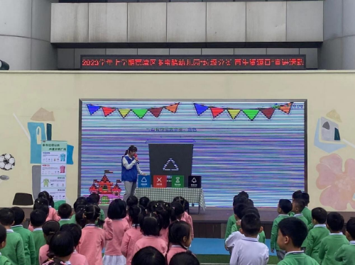 而在多宝街多宝路幼儿园丛桂路分园,则开展了一场别开生面的垃圾分类宣传活动。活动现场,工作人员通过精美的PPT向小朋友们介绍了垃圾桶的四分类,包括可回收垃圾、有害垃圾、其他垃圾和厨余垃圾,用简洁明了的语言解释了不同种类垃圾的特点和分类方法,让小朋友们对垃圾分类有了更深入的了解。工作人员还现场进行提问,小朋友们热情高涨,纷纷举手积极抢答,在轻松有趣的氛围中,激发大家对垃圾分类的兴趣。通过互动环节,小朋友们不仅加深了对垃圾分类的印象,还学会了在实际生活中如何正确分类垃圾。