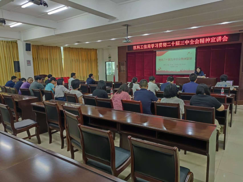 为进一步学习领会和全面贯彻落实党的二十届三中全会精神,8月30日下午,区科工信局组织召开学习贯彻党的二十届三中全会精神宣讲会议,局党组书记何健仪为全局干部职工宣讲党的二十届三中全会精神。