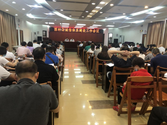 为贯彻落实社会信用体系建设,营造良好的社会信用法治环境,促进和谐社会建设,2021年5月14日上午9:30时,西村街党工委、办事处组织街各职能科室、社区居委会和辖区56家企业召开了社会信用体系建设工作会议,西村街领导班子成员、科室负责人、社区居委会负责人及辖区56家企业负责人共80多人参加了会议。会上,西村街对社会信用体系建设提出了以下几点意见: