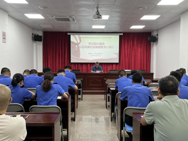 为深入学习贯彻全面从严治党要求,持续深化党风廉政教育,营造崇廉拒腐的良好风尚,6月19日,威尼斯人app区城管执法局组织全体党员干部开展专题廉政教育讲座会议,区城管执法局副局长黄良主持会议。