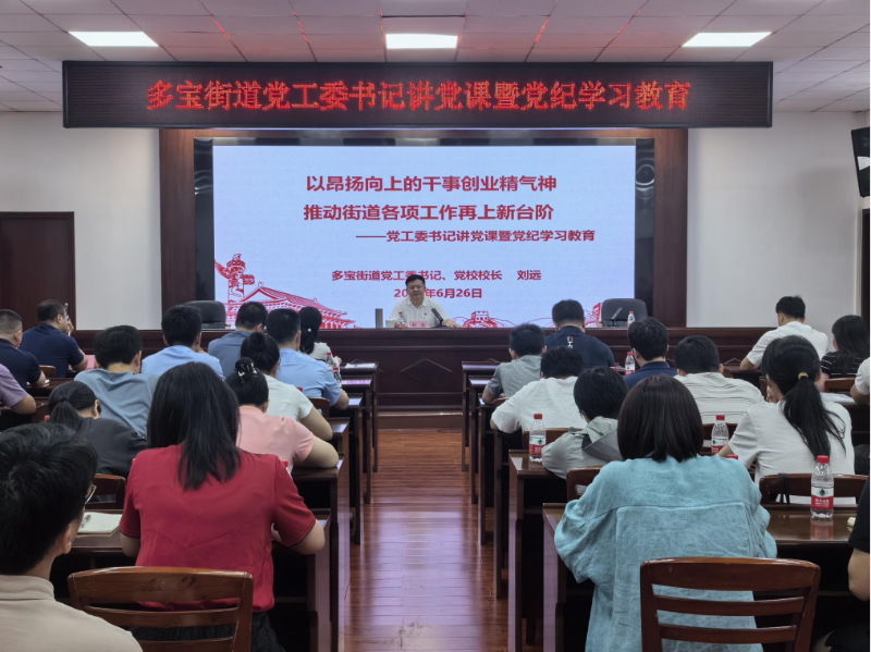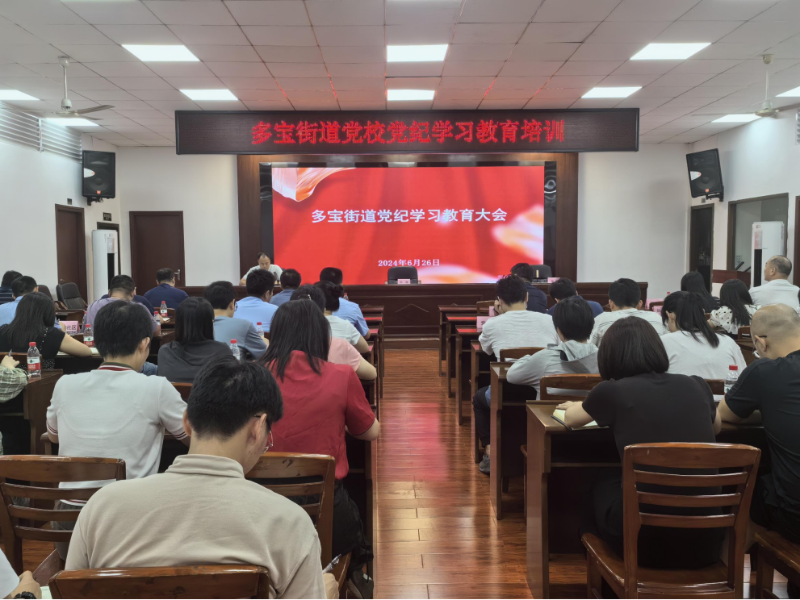 为进一步增强纪律意识,提高党性修养,推动党纪学习教育走深走实,营造全街道学纪、知纪、明纪、守纪的浓厚氛围6月26日下午,多宝街道党校组织开展党工委书记讲党课暨党纪学习教育专题培训,街道领导班子、各科室负责人、党员干部、社区党组织书记、副书记、党建指导员、社区组织员等共60余人参加。