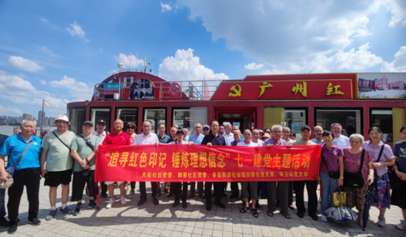 多宝街道天佑社区党委携手御景社区党委、环卫站党支部、社会组织联合党支部,组织党员到黄沙码头,开展“追寻红色印记 锤炼理想信念”主题活动,重温中国共产党的艰苦奋斗历程,感受红船精神。