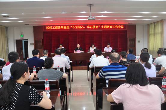 (图:区科工商信局党组召开“不忘初心、牢记使命”主题教育工作会议)