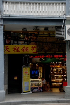 恩宁路,是传统手工制作铜器一条街,也是广州的一块商业文化招牌,其纯手工铜器备受百姓喜爱,成为一种传统的工艺品流传至今,经久不衰。上世纪七八十年代,在广州的大街小巷常听到“补铜煲、钛煲”的叫声。短短一条恩宁路,就有十几家铜器铺聚集。从传统手工制作,到机器批量生产;从几十元的小件,到十几万元的纯手工打造“高级定制”;从日用铜壶铜盘铜锅,到大件的铜质家具、奢华摆设都能找到。 恩宁路铜器一条街的店铺各有特色,有专卖手工制品的,有专卖机器制品的,有以生活用品为主的,有以旅游纪念品为主的……平日,古铜街非常安静,遇上节假日,古铜街便热闹起来,来自各地不同口音的游客熙来攘往地拥挤到这条街参观、“寻宝”。古铜街里各家店铺排满了各式铜器、银器、铁器、应有尽有,琳琅满目。