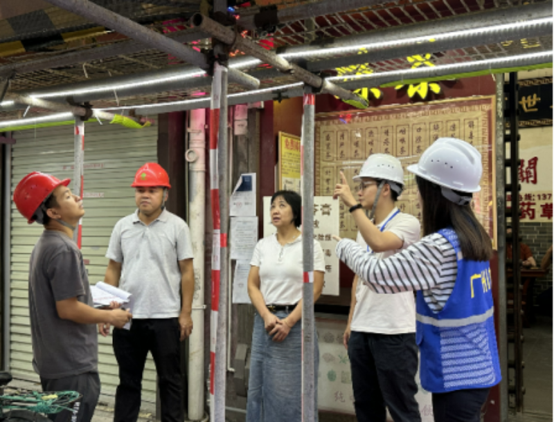 他们是施工安全的监督者——从工程队进驻历史文化街区那一刻,网格员就会深入工地,重点巡查施工过程中的安全措施和保障群众通行的落实情况。近日,永庆坊社区网格员小蔡接到多宝路商铺店长的投诉,称外立面搭建的脚手架阻碍通行,影响店铺生意。随即,小蔡联系施工队到现场与店长进行沟通,并根据实际情况对脚手架进行改动,店长直呼:很满意!