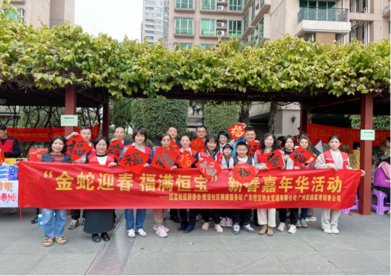 为弘扬中华优秀传统文化,营造浓厚的节日氛围,在多宝街公共卫生委员会的指导下,在新春佳节来临之际,恒宝社区联合社区颐康服务站、恒宝物业管理有限公司开展“金蛇迎春 福满恒宝”新春嘉年华活动。此次活动邀请了恒宝社区热心居民为社区群众书写新春对联、福字,排队等候的居民络绎不绝。