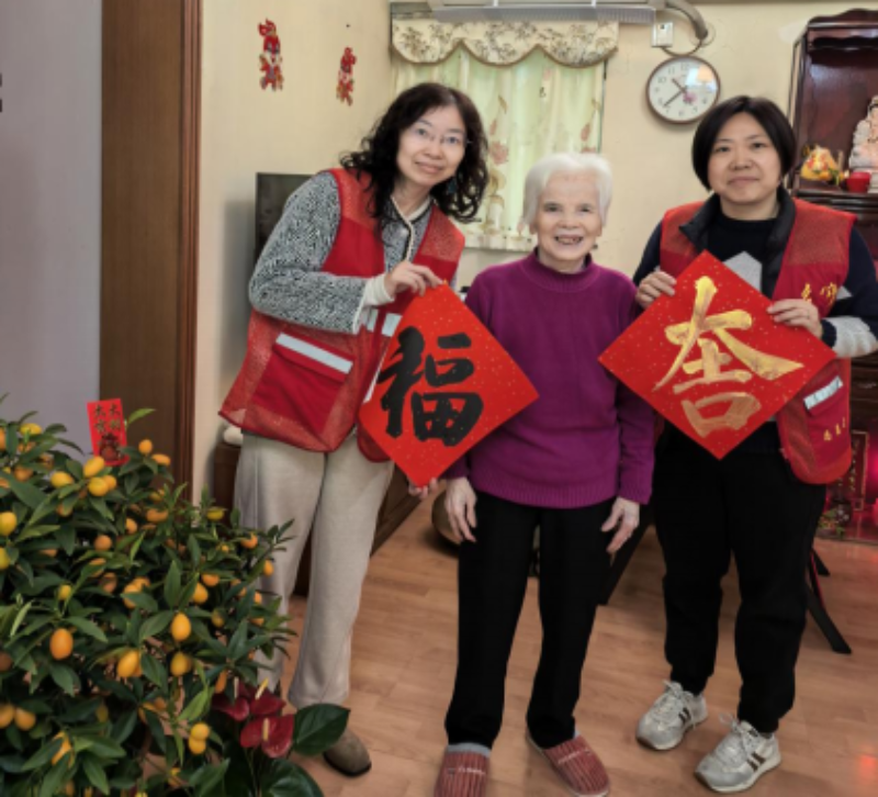随后,社区工作人员和党员志愿者带着福字门贴以及新春祝福送到辖区行动不便长者手中。工作人员敲开一扇扇门,将这份特别的礼物送到长者们的手中,并致以新年的问候和祝福。长者接过福字,脸上洋溢着幸福的笑容,纷纷表示感谢社区贴心关怀,范奶奶激动地说:“谢谢你们来看我们,还给我们送福字,这个新年我们感觉特别温暖,特别开心。”社区把满满的祝福带到长者身边,让长者们都感受到了浓浓的年味,对新一年充满期待。