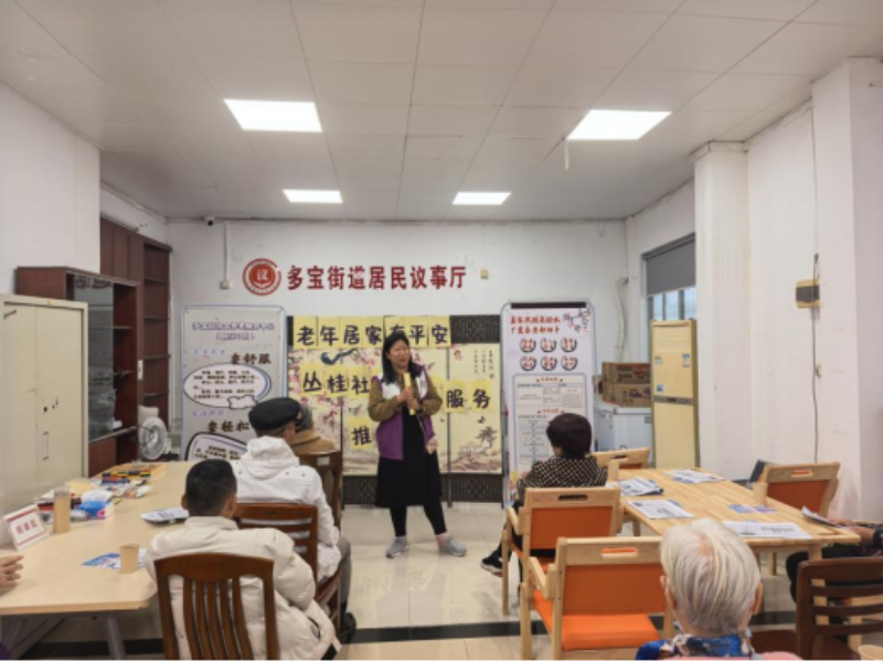 为增强社区长者的居家安全意识,全面了解他们对居家安全的知晓度,多宝街道“穗救易·共助空间”携手多宝街综合养老服务中心(颐康中心),于2月28日上午在多宝街道丛桂社区、恩宁社区颐康服务站共开展了一场意义重大的“老年居家有平安”——多宝街道社区长者居家安全服务宣讲会。