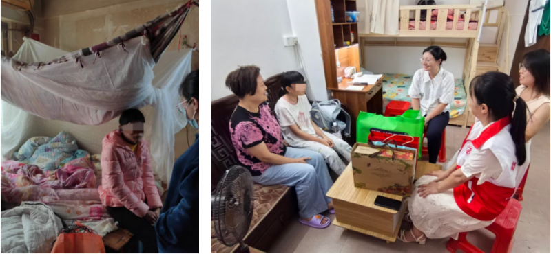 “平日里,社区通过上门慰问、社区志愿服务等形式对辖内特殊、困难家庭进行帮扶。小谊的父亲此前也经常参与社区活动。”社区相关工作人员介绍道,“父亲过世后不久,小谊的姑父、姑姑来到社区告知我们情况,并向我们求助。经过走访调查后发现,小谊母亲刘女士疑似精神障碍,对小谊缺乏照顾。小谊自己的精神状态也相当低迷,没有同龄人的精气神,看着很是瘦弱。”另外,母女二人所居住的房屋是小谊父亲生前向亲朋借用,在其父亲过世后,业主也提出要将房屋收回另作他用。小谊正常成长所需的物质条件和精神条件都无法得到保障,生活面临重重困难。