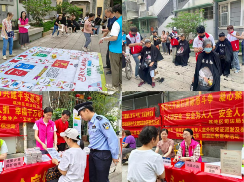 活动现场,除了非遗植物染的魅力展示,还巧妙融入了社区工作的多元宣传。消防安全生产、垃圾分类、女童保护等知识以寓教于乐的方式传递,健康义诊、便民义剪、法律咨询等摊位前人头攒动,为居民提供了实实在在的便利与帮助。