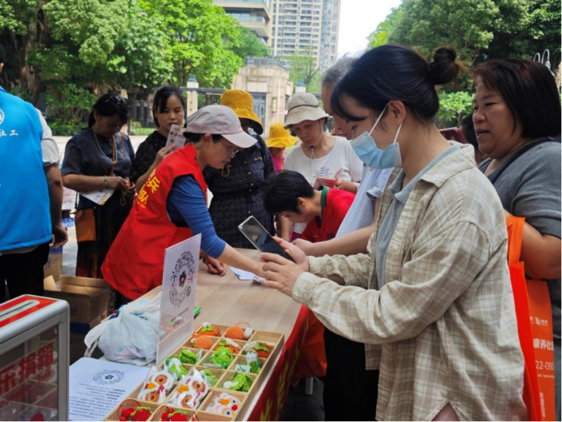 (图:活动开展爱心义卖,居民踊跃为社区慈善基金捐款)