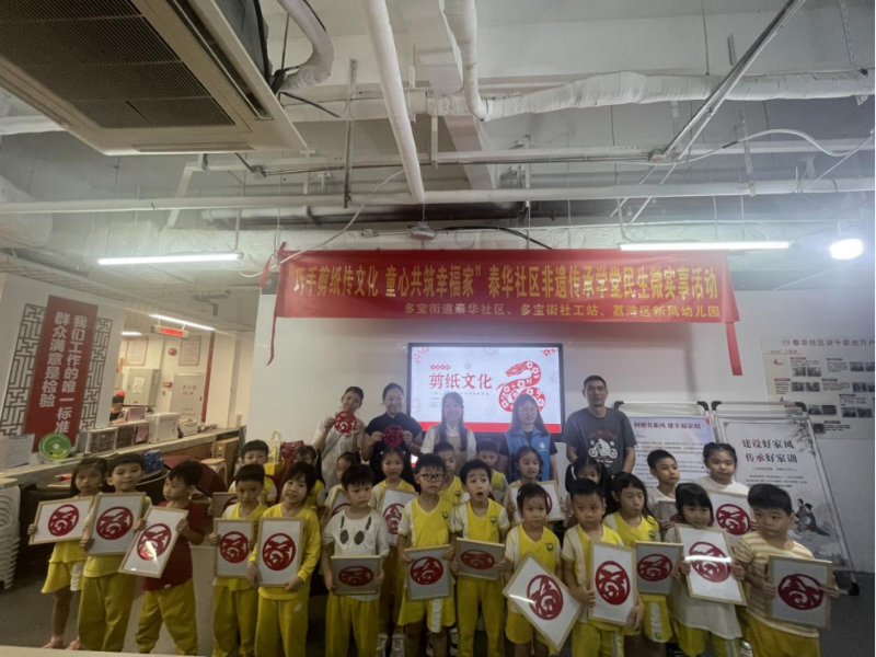 红纸翻飞传古韵,童声笑语暖社区。为弘扬中华优秀传统文化,厚植儿童文化自信,搭建亲子情感桥梁,近日,多宝街道泰华社区联合社区非遗传承学堂、多宝街道“双百工程”社工服务站及新风幼儿园共同举办“巧手剪纸传文化 童心共筑幸福家”民生微实事主题活动。24组亲子家庭以剪刀为笔、红纸为卷,在非遗技艺的魅力中,镌刻下温馨的家庭记忆。