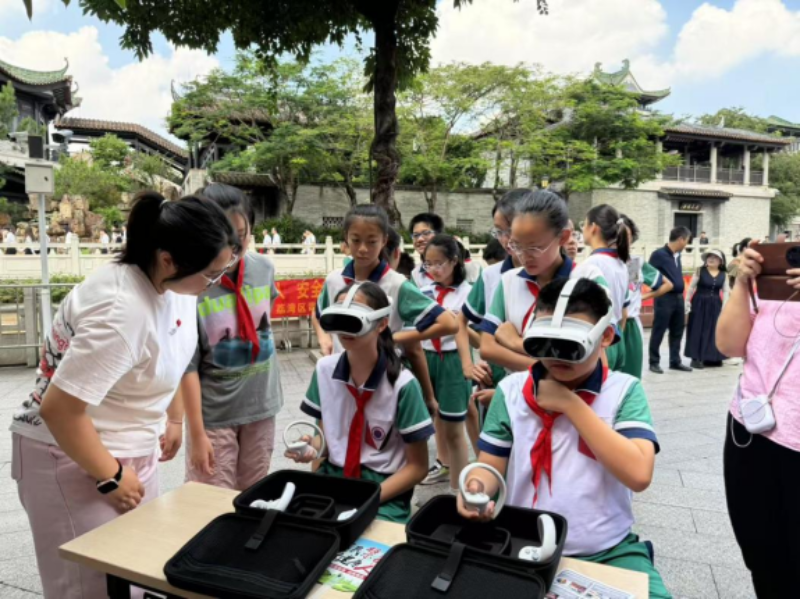 (图:蒋光鼐小学学生进行禁毒VR体验)