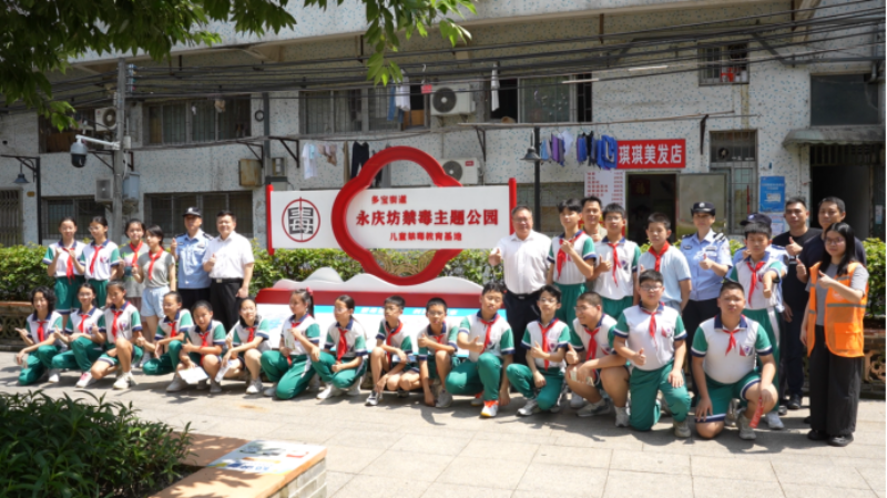 为深入贯彻落实习近平总书记关于禁毒工作“关口前移、预防为先”的重要指示精神,提升全民防毒拒毒意识,充分发挥永庆坊禁毒主题公园宣传教育主阵地作用,6月25日上午,多宝街道在永庆坊禁毒主题公园开展“健康人生,绿色无毒”——2025年“6・26”国际禁毒日宣传活动。威尼斯人app区挂点区领导游志红、多宝街道党工委书记刘远及各相关单位相关负责人、蒋光鼐小学师生代表、大学生禁毒志愿者以及市民群众等参加活动。