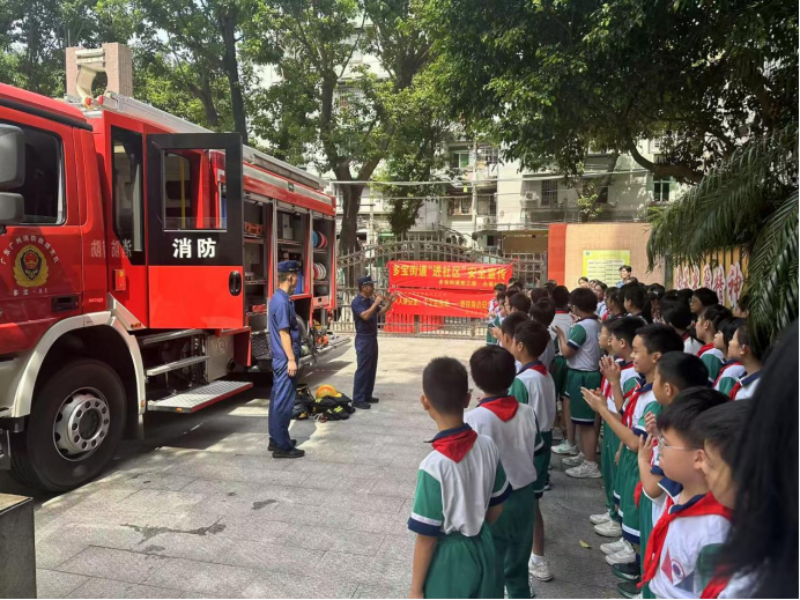 暑假即将到来,高温天气成为常态,伴随而来的是用电高峰和潜在的火灾风险。安全无小事,防患于未“燃”。为进一步强化师生消防安全意识,提升自防自救能力,7月3日,多宝街道和多宝消防站联合蒋光鼐纪念小学开展消防安全宣传活动,通过“校园+家庭”“教育+实践”的多元形式,让消防安全知识入脑入心,为校园和家庭筑牢“防火墙”。
