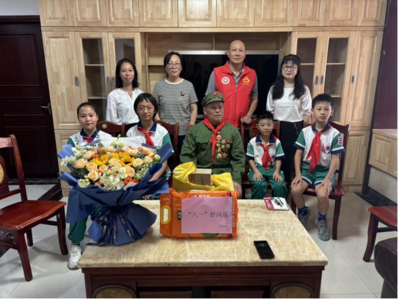 街道联合社区党委,组织蒋光鼐纪念小学师生代表走访慰问二等战功功臣。少先队员为老英雄佩戴红领巾、敬献鲜花,围坐在老兵身旁聆听其讲述参战的革命经历。当老战士展示泛黄的军功章时,孩子们自发鼓掌,用热烈而坚定的掌声表达对革命前辈的崇高敬意。