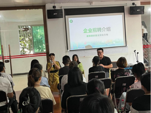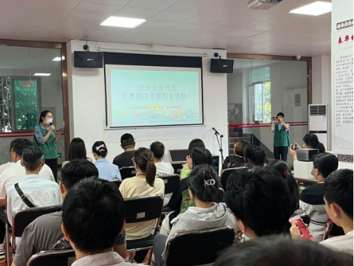 (图:绿马甲就业专员进行就业政策宣讲)