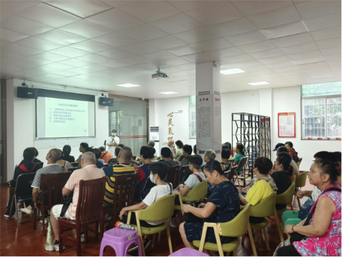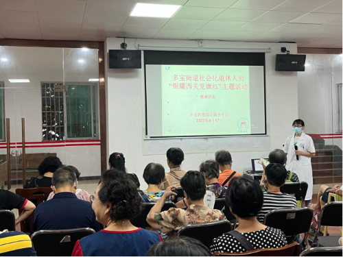 为深入贯彻落实积极应对人口老龄化国家战略,保障老年人健康,8月17日上午,多宝街公共卫生委员会联合综合服务中心在街党群服务中心二楼开展社会化退休人员“银耀西关党旗红”主题系列活动—夏日养生健康讲座,活动邀请社区卫生服务中心医生为老年人普及健康常识,共同促进社区老年人健康教育。