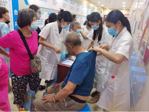 义诊活动现场,多位广医一院的专家学者向侨界群众开展老年人健康管理中医知识科普和咨询义诊,并带领大家进行肺功能锻炼操、八段锦养生操等操作示范。此外,现场还设置了肺功能检测、天灸等体验环节,贴耳穴更是受到老年朋友的热捧。