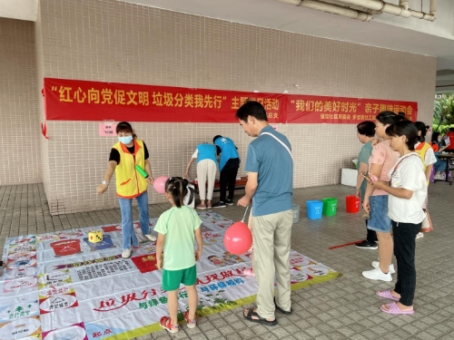 此次主题党日活动,既是一次宣传活动,也是一次学习活动。一是设置垃圾分类为主题的游戏摊位吸引居民参与其中。采用寓教于乐的形式设置了“垃圾分类知识投壶”和“亲子飞行棋”两个摊位,党员志愿者通过轻松有趣的方式向孩子们宣传垃圾分类的意义、方式和回收利用等知识,进一步促进他们认识垃圾分类和回收利用的重要性,培养孩子的环保意识从而带动家人参与垃圾分类。二是现场派发垃圾分类宣传资料提高居民知晓率。党员志愿者向居民发放垃圾分类宣传资料,讲解垃圾分类的意义及如何正确分类投放垃圾,鼓励居民坚持做好垃圾分类,让居民养成垃圾分类的好习惯。