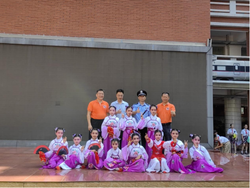 (图:出席活动的领导与学生表演队合影)