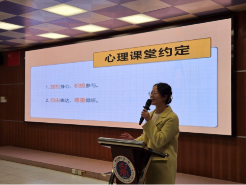 (图:心理老师讲解课堂约定)