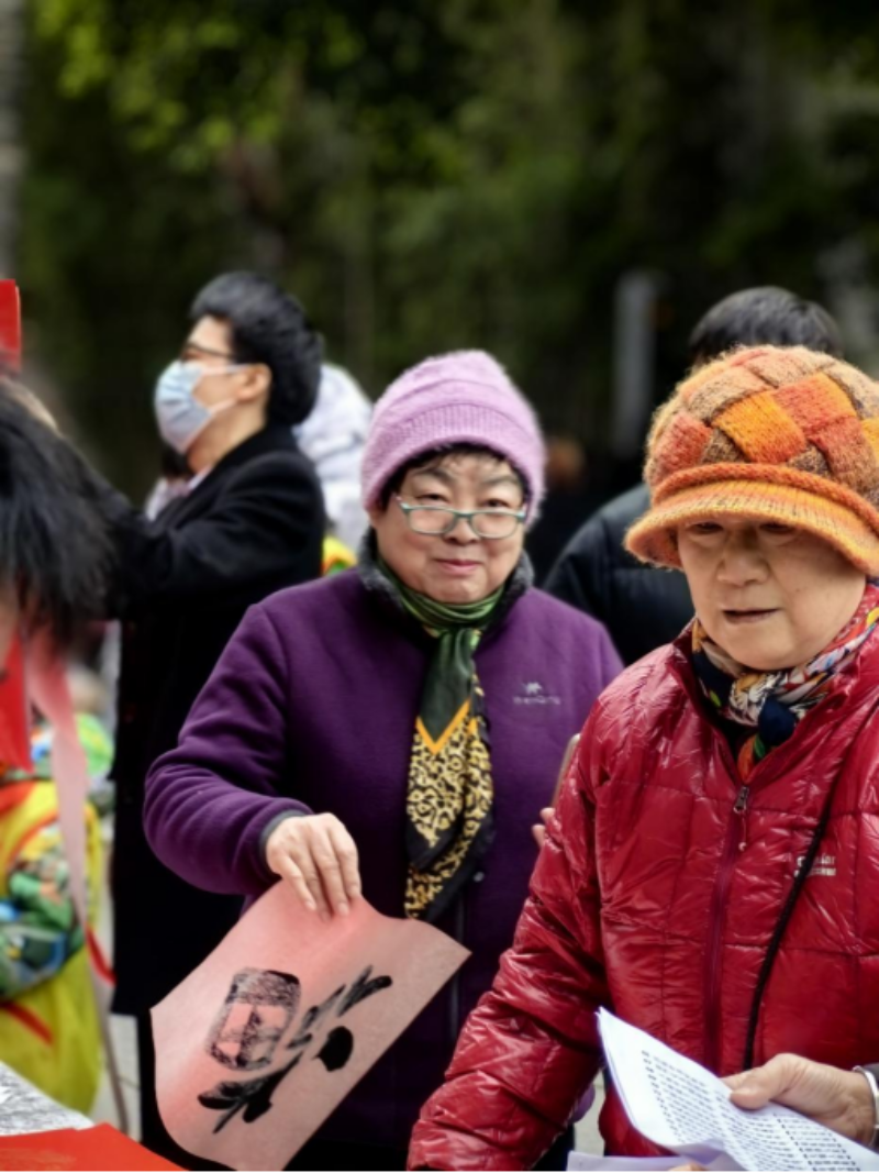 “人和家顺百事兴,富贵平安福满堂”“花开富贵家家乐,灯照吉祥岁岁欢”“合家欢乐财源进,内外平安好运来”……活动现场,书法家们手握毛笔,挥毫泼墨,吉祥的祝福跃然纸上。红棉老兵志愿者们在现场维护秩序,晾干春联,派送“福”字,现场一片喜气洋洋。一幅幅带着情谊的春联墨香浓浓、吉祥喜庆,让整个现场充满了年味。活动共送出约200副春联,500个“福”字,营造了浓厚的节日氛围。