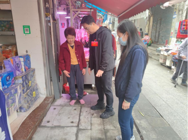 “逢源市12号前留有一个坑口盖着木板,半年了还未维修好,居民出行经过很不安全,坑里还有老鼠出现,周围环境卫生都变差了。”“宝贤牌坊处早、晚6-8点经常有送货车进巷,噪音大,还把路面压坏了,弄得大家出行都不方便。”1月24日,家住多宝街道逢源市的郑姨在多宝街道人大代表中心联络站向接待的人大代表反映上述问题。群众事无小事,区人大代表刘轶在接访过程中立刻了解详情,安抚郑姨情绪。