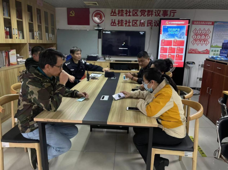 (图:社区工作人员联同社区民警、精防医生紧急讨论精防人员突发情况处理方案)