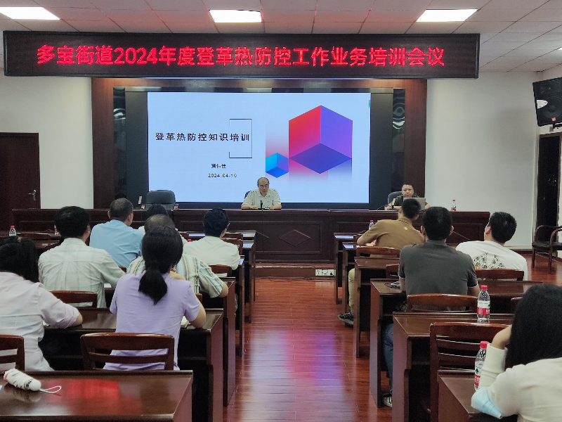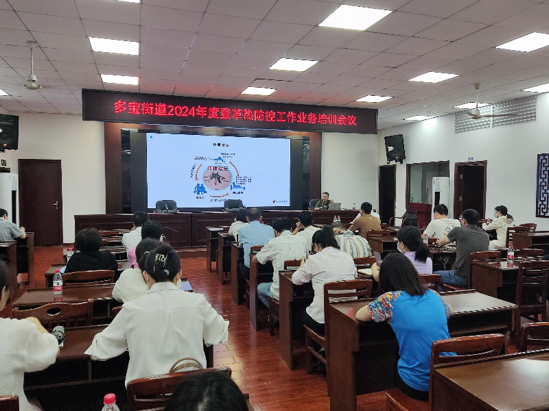 四月以来,气温高热、气候潮湿,蚊媒密度逐渐升高,增加了今年登革热防控工作的难度。根据省、市登革热防控工作会议精神,多宝街道公共卫生委员会高度重视,提出及早介入的工作要求,于2024年4月19日上午组织辖内社区、消毒站、集团单位、物业管理单位和专业市场等单位40余名登革热防控工作负责人,在办事处三楼会议室召开了街道2024年度登革热防控工作业务培训会议。