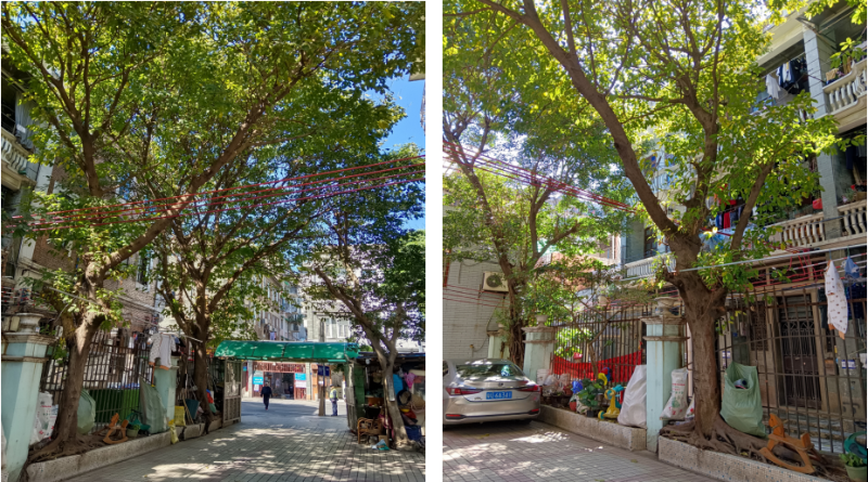 今年3月底,多宝街道宝源社区收到一个重点工单,宝源路2号大院居民反映院内有4棵榕树生长速度过快,影响住户采光,同时引发蚊虫滋生,根系影响排水管道破裂等问题。