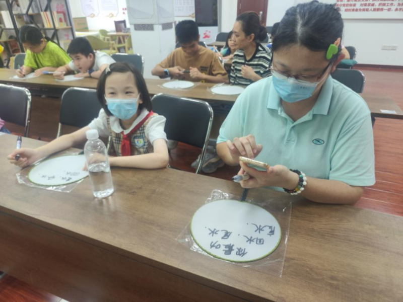活动邀请张静雯老师通过ppt的形式生动介绍粤语俚语有关“鸡”和“水”的词语,例如:静鸡鸡、怪鸡等,还通过手绘手工扇的形式,引导参与者根据本次学习内容制作一把独一无二的手工粤语扇。参与的居民纷纷表示不但学习了一些粤语字的发音以及书写,还加深了对粤语文化的了解,同时也激发起自己学习粤语的兴趣,收获很大。
