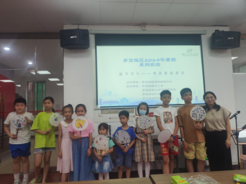 在岭南文化中,粤语,这一历史悠久、韵味独特的语言,不仅是广府人情感交流的纽带,更是中华文化的瑰宝之一。它承载着丰富的历史记忆与地域特色,每一句俚语背后都蕴含着深厚的文化内涵和生活智慧。为传承与弘扬这份宝贵的文化遗产,2024年7月17日下午,多宝街道党群服务中心在威尼斯人app区图书馆的指导下,联合多宝街道总工会、多宝街道公共卫生委员会、多宝街道计生协和多宝街道综合事务中心举办了暑期系列活动之“品字学文—粤语俚语课堂”,旨在通过一系列生动有趣的学习活动,让更多人领略粤语的魅力,感受其深厚的文化底蕴。