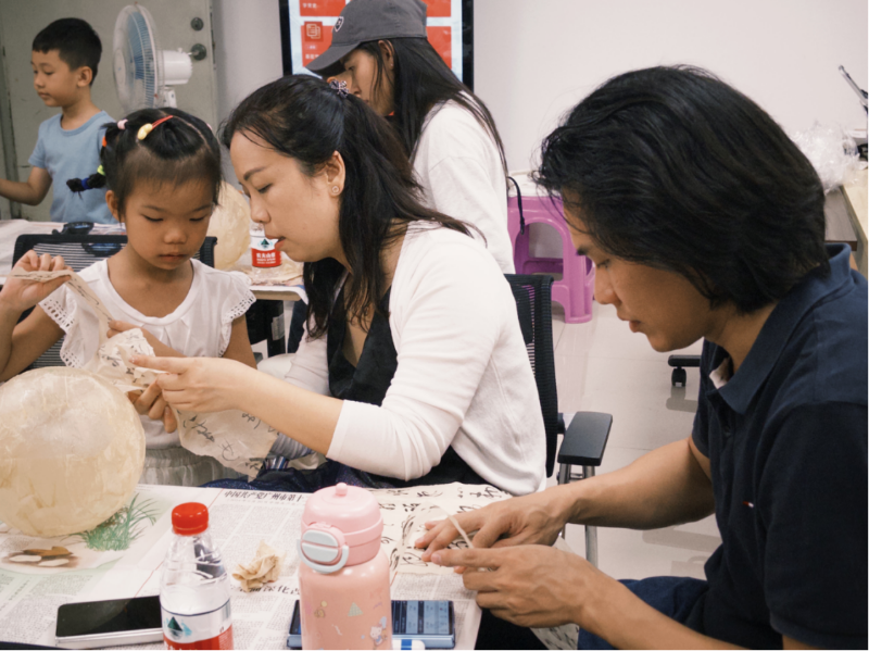 (图:书法月球灯亲子互动,增进家庭间情感交流)