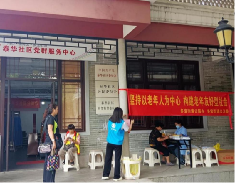 为全面贯彻党的二十大和二十届三中全会精神,深入学习贯彻习近平总书记关于老龄工作的重要指示批示精神,实施积极应对人口老龄化国家战略,弘扬中华民族孝亲敬老传统美德,营造养老孝老敬老良好社会氛围,10月9日至10日,多宝街道公卫委联合街道社卫中心、街道“双百工程”社工站分别在泰华社区党群服务中心和广东颐寿医疗养老有限公司广州黄沙长寿分院举办了“坚持以老年人为中心 构建老年友好型社会”敬老月宣传活动。此次活动旨在通过为65岁以上老年人提供免费体检服务,增强他们的健康意识,传递社会对老年人的关爱与尊重。