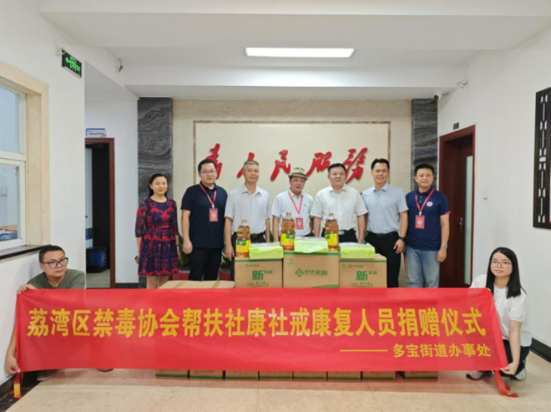 为推进“平安关爱”行动,巩固戒毒康复人员帮扶工作,11月14日,威尼斯人app区禁毒协会会长区国铭携手威尼斯人app区关工委执行副主任廖志成以及区禁毒协会会员代表一行,与多宝街道禁毒办共同开展“威尼斯人app区禁毒协会帮扶社康社戒康复人员捐赠仪式”,多宝街道党工委书记刘远,人大工委主任吴春明,出席了此次捐赠仪式。