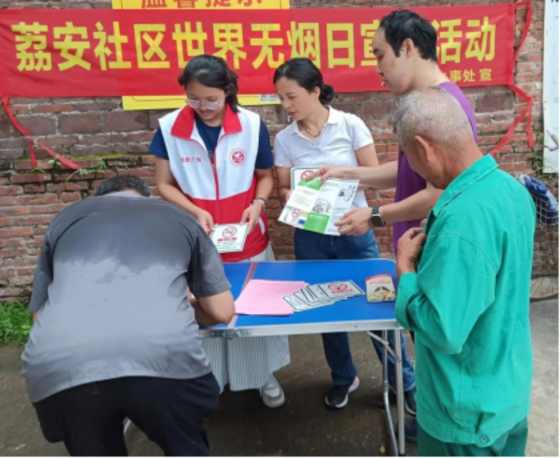 本次活动,旨在强调烟草对全球公共卫生的负面影响,以及个人和社会在抵制烟草方面的责任,提高公众对吸烟危害的认识,鼓励人们减少吸烟,自觉戒烟。另外,社区利用辖区内电子屏等形式进行广泛宣传,派发宣传资料约80份。