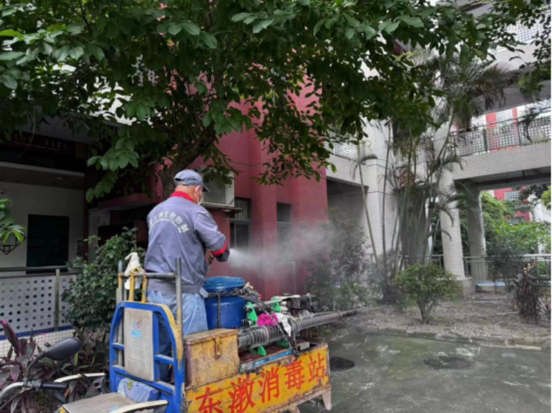 执法办、街环卫站结合爱国卫生运动,持续做好环境卫生保洁工作。消毒站持续对风险点及周边进行病媒生物防制消杀作业,有效降低登革热传播风险。消毒站在高温高湿天气,针对性对小区、公园、学校、机关等人居密集的重点场所增加消杀喷洒频次和浓度;对绿化带、公园、下水道等蚊虫极易孳生的区域,通过采取药物喷洒和投放灭蚊幼缓释剂相结合的方式,有效杀灭成蚊,遏制积水点中蚊幼生长,降低蚊媒密度,增强登革热防控效能。