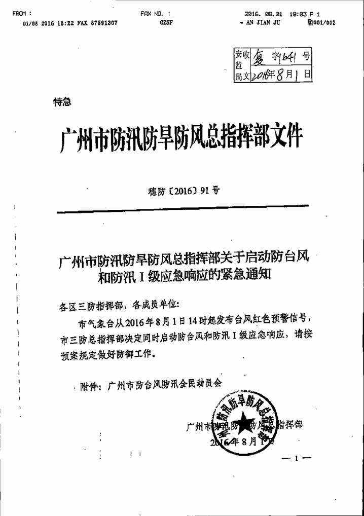 市三防办关于启动防台风和防汛Ⅰ级应急响应的紧急通知