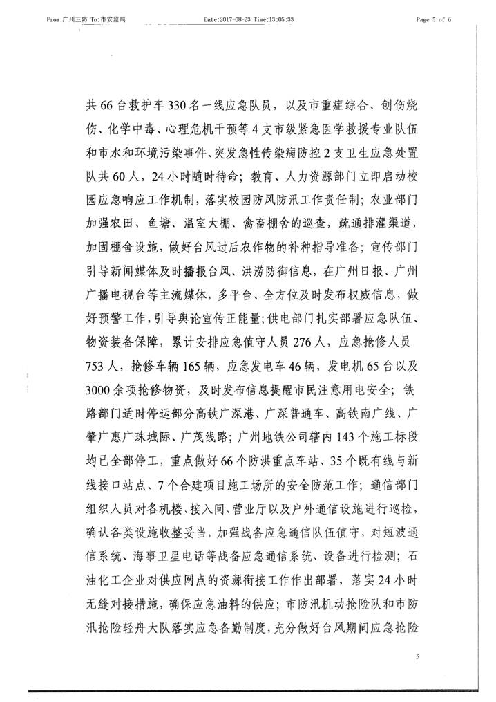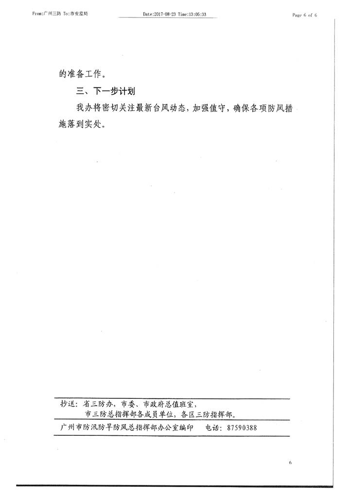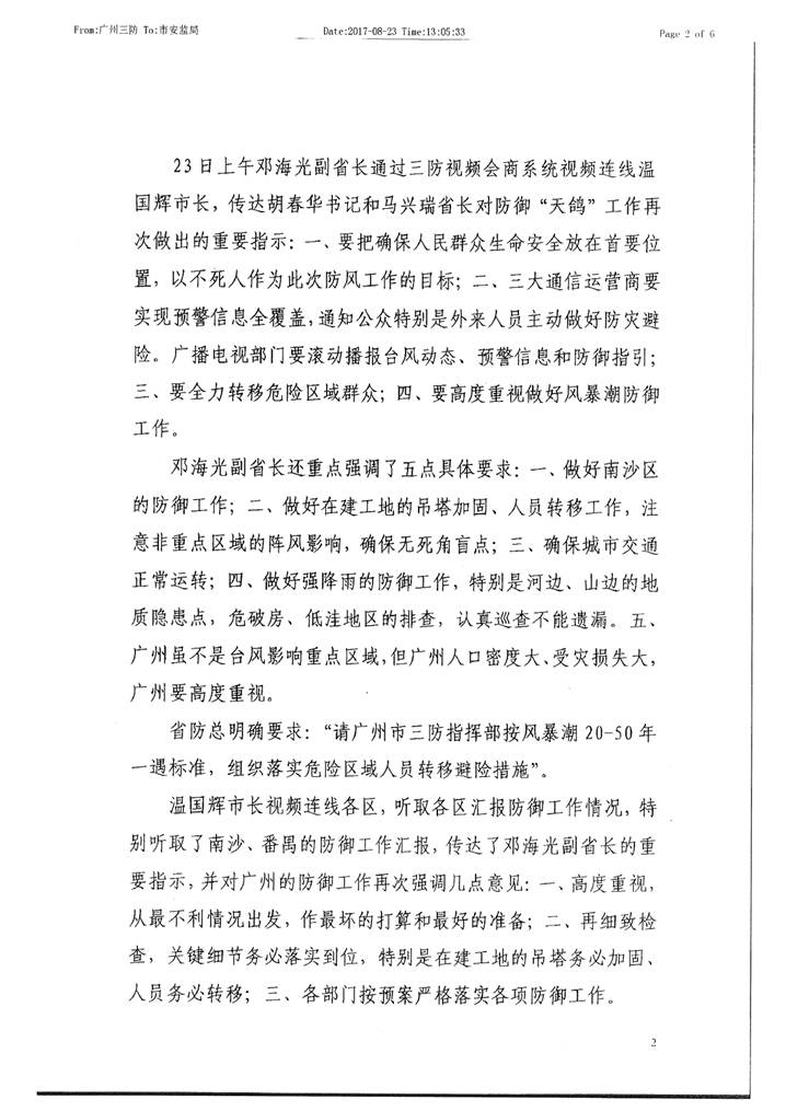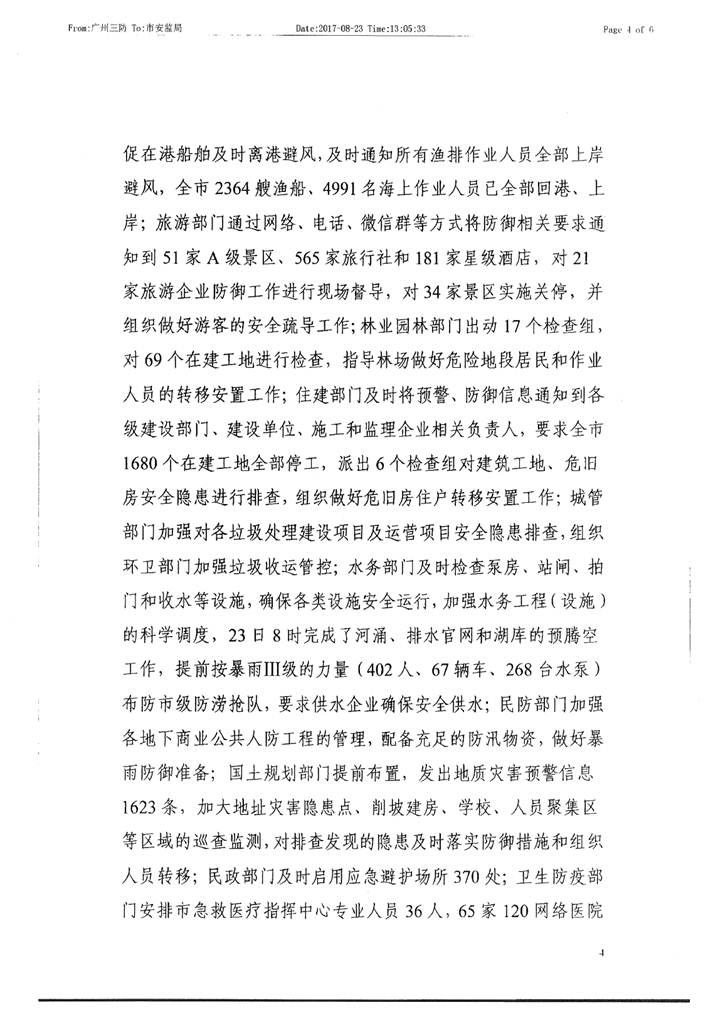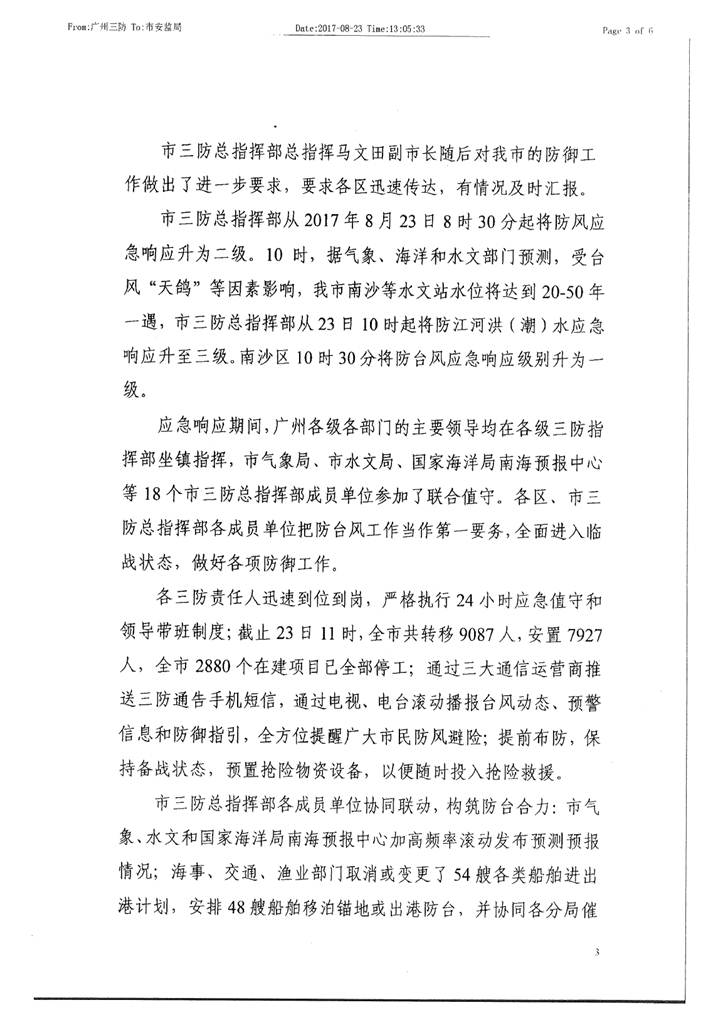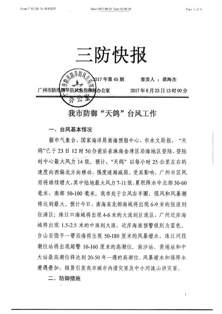 转发我市防御“天鸽”台风工作